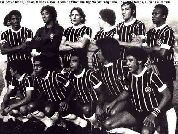 Corinthians 1976 : Ze Maria, Tobias, Moisés, Zé Eduardo, Givanildo e Wladimir. Agachados estão: Vaguinho, Neca, Geraldão, Ruço e Romeu.